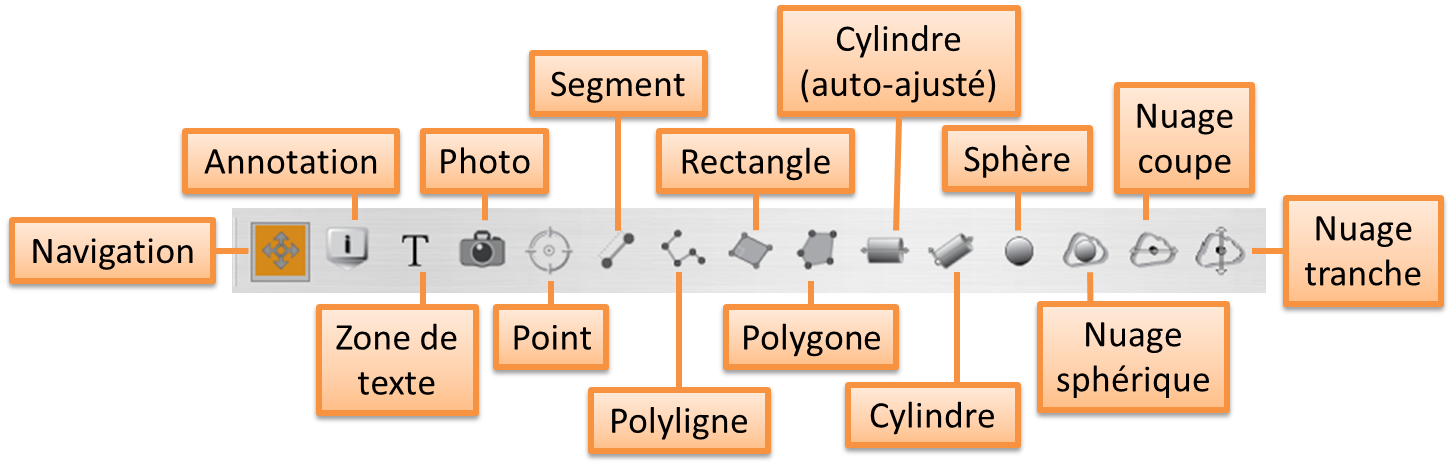 La saisie d’un objet peut être initiée dans une vue et se prolonger dans une autre vue panoramique ou la vue 3D. Cet objet sera cependant rattaché dans l’arborescence du site à la première vue utilisée lors de la saisie (ou la station la plus proche lors d’une saisie dans la vue 3D).