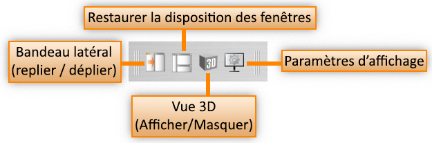 - afficher ou masquer la fenêtre de visualisation 3D (disponible en fonction de la licence et des capacités de l’ordinateur)