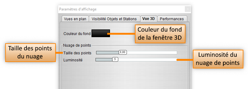 La taille d’affichage des points et leur luminosité peuvent être modifiées.