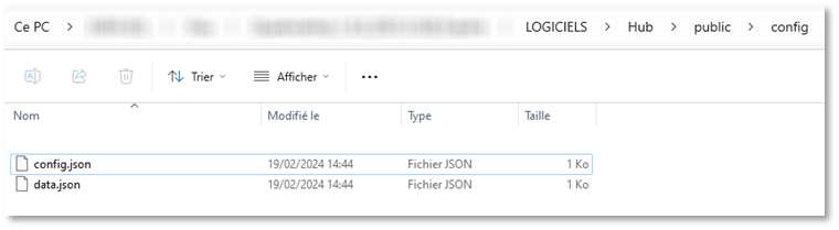 Dans l’explorateur Windows, aller dans le dossier : …/LOGICIELS/Hub/public/config