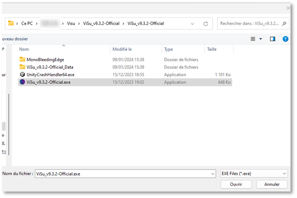 - Après avoir cliqué sur « ajouter un exécutable » une popup s’ouvre vous indiquant de sélectionner le nouvel « exe »