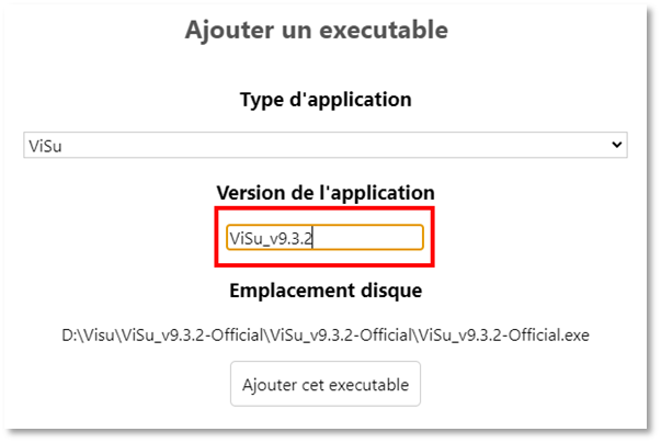 Modifier simplement le champ ci-dessous avec le nom et version de l’application afin qu’il soit rapidement identifiable puis cliqué sur « Ajouter cet exécutable »