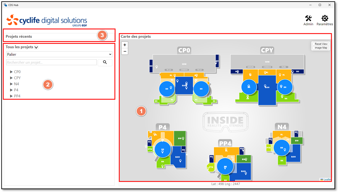 Ouvrir l'application CDS_HUB.exe puis lancer un projet.