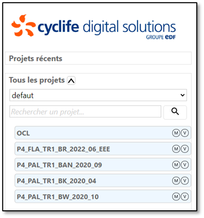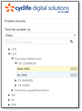 Déplier l’arborescence afin de localiser le projet souhaité, puis le sélectionner.