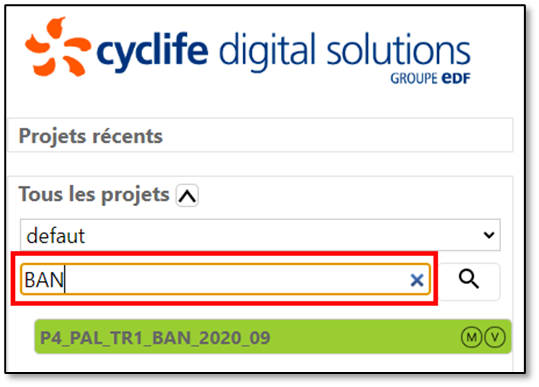 Il est également possible de filtrer la sélection via la barre de recherche de Projet.